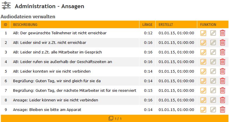 Durch Angabe der Nebenstelle generiert sich ein Anruf und es kann auf diesem Weg eine Bandansage generiert werden.