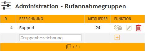 Das Symbol dient zur Neuanlage einer Rufannahmegruppe,