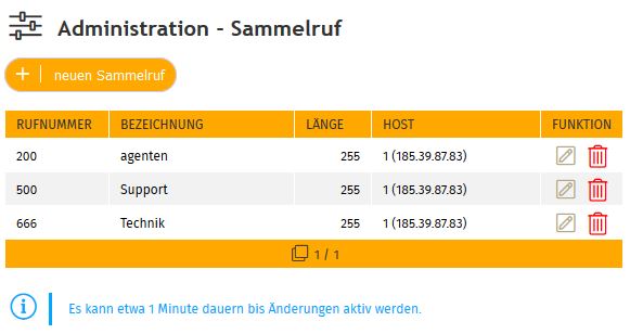 Hier können die vorhandenen Sammelrufe bearbeitet und neue Sammelrufe